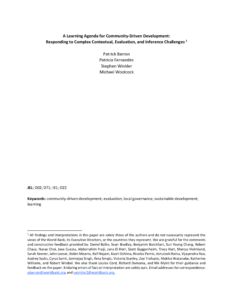 世界银行:社区驱动发展的学习议程:应对复杂的情境、评估和推理挑战(英文版).pdf