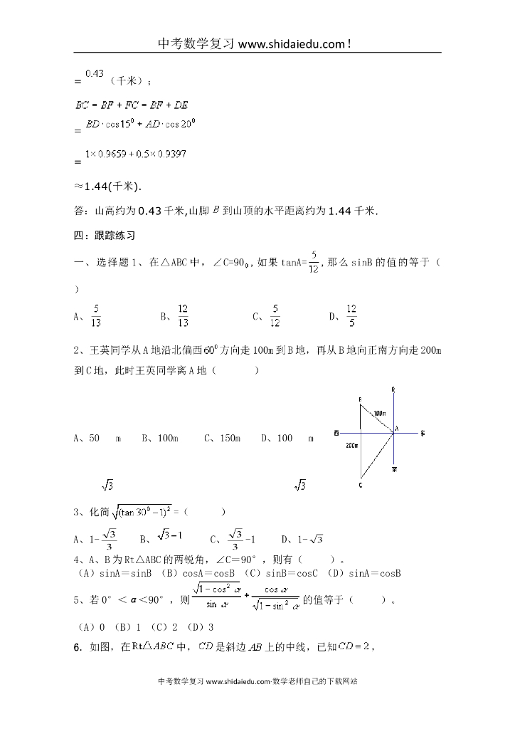 中考数学第一轮复习教案---解直角三角形最全版.doc
