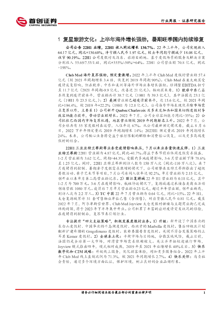 首创证券:社服周报:上半年复星旅文海外增长强劲,看好国内疫后酒旅复苏.pdf