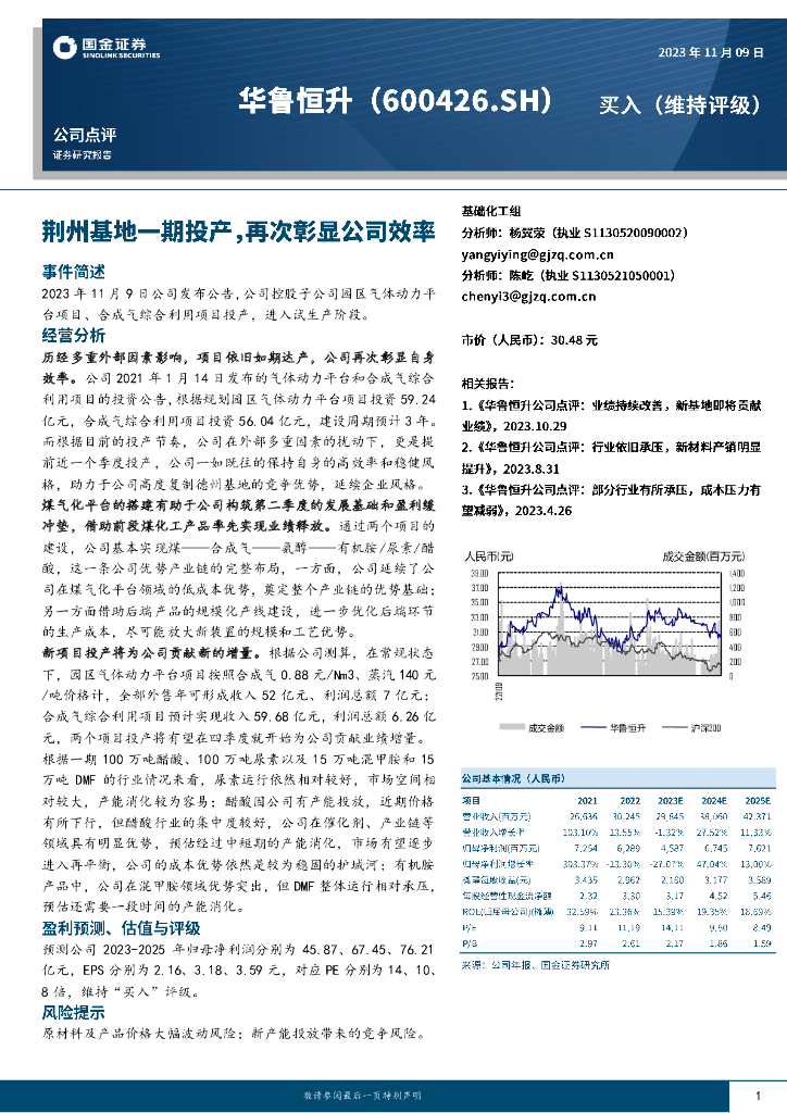 国金证券:华鲁恒升(600426)-荆州基地一期投产,再次彰显公司效率.pdf