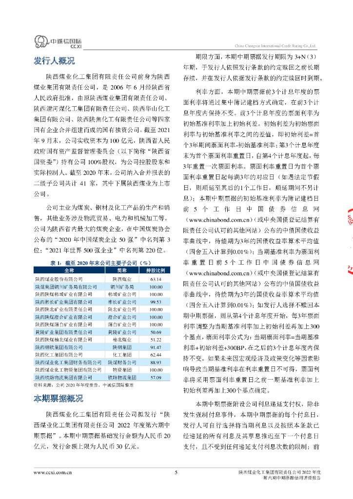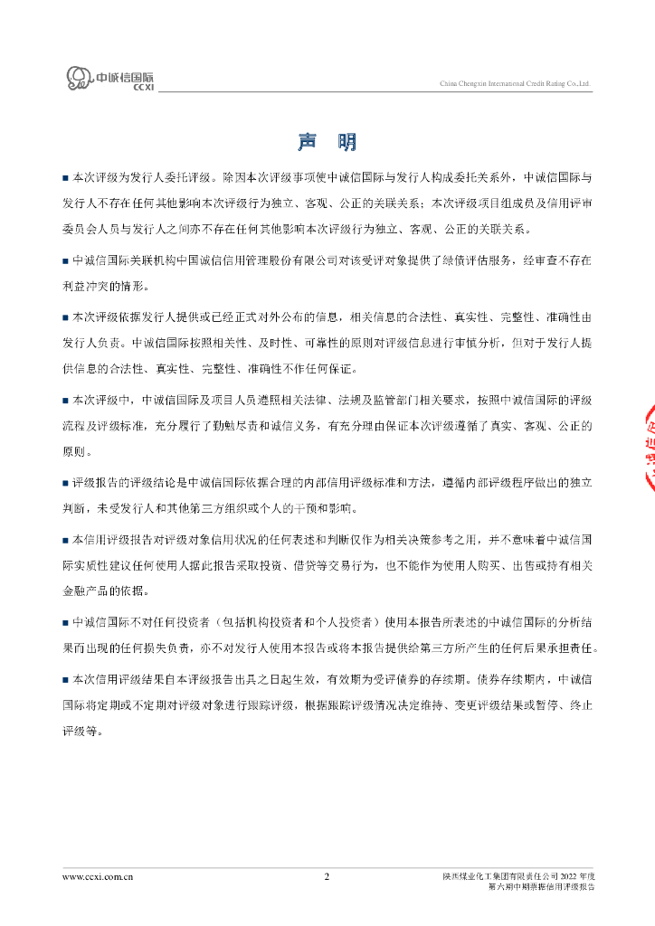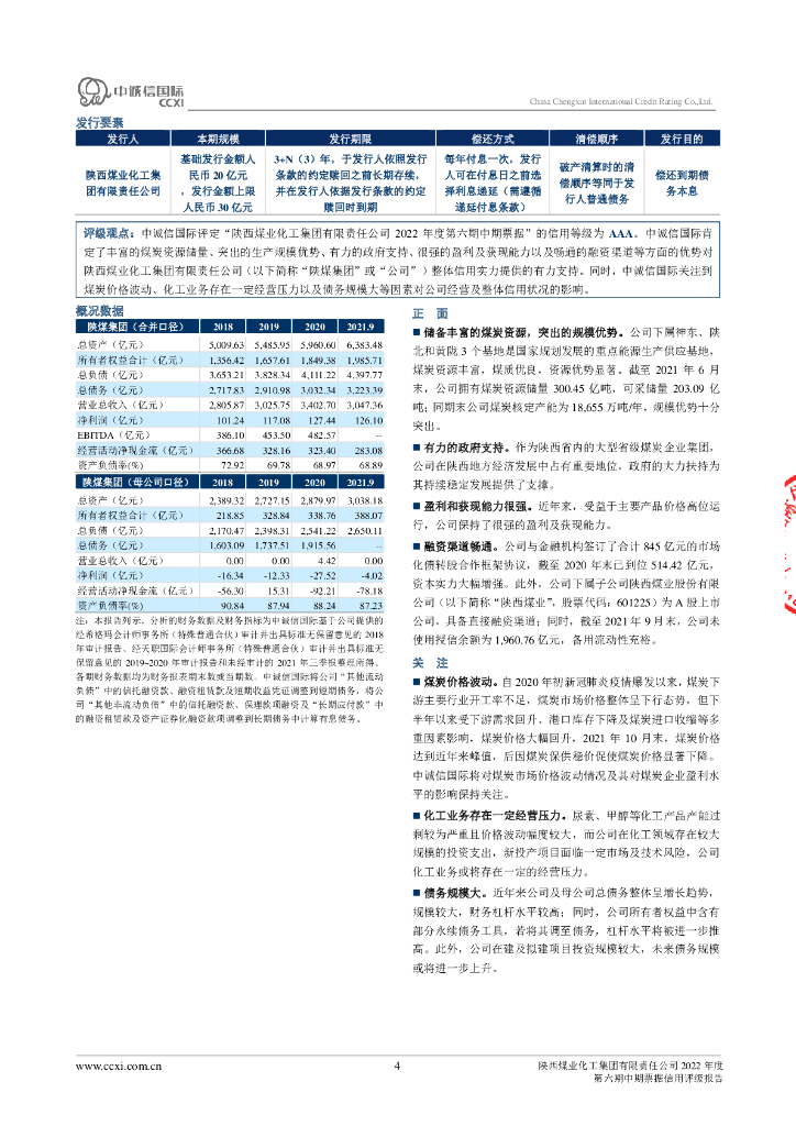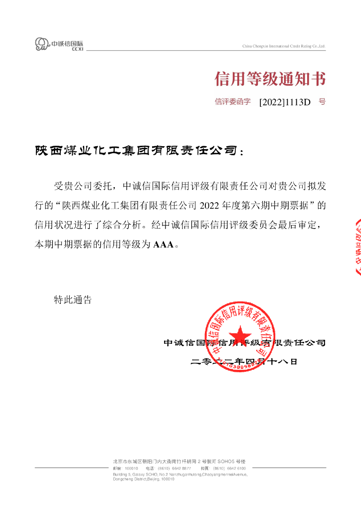 中诚信:陕西煤业化工集团有限责任公司2022年度第六期中期票据信用评级报告.pdf