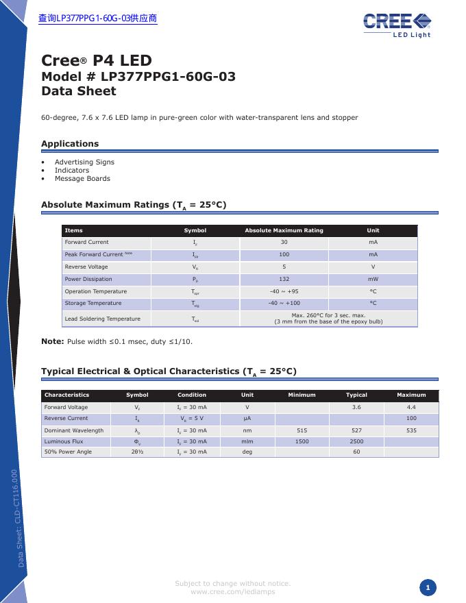 CREE LP377PPG1-60G1-03 数据手册.pdf