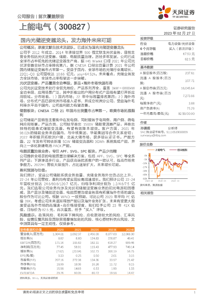 天风证券:上能电气(300827)-国内光储逆变器龙头,发力海外未来可期.pdf