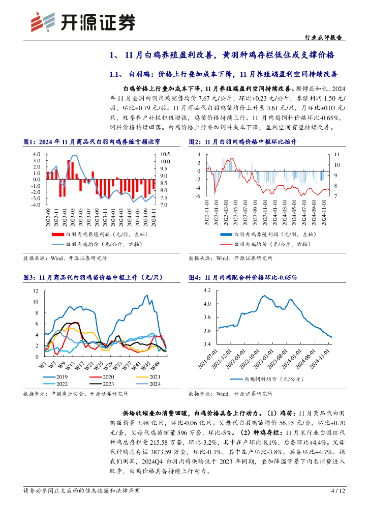 开源证券:农林牧渔行业点评报告:白鸡养殖盈利改善,黄羽种鸡存栏低位或支撑价格.pdf