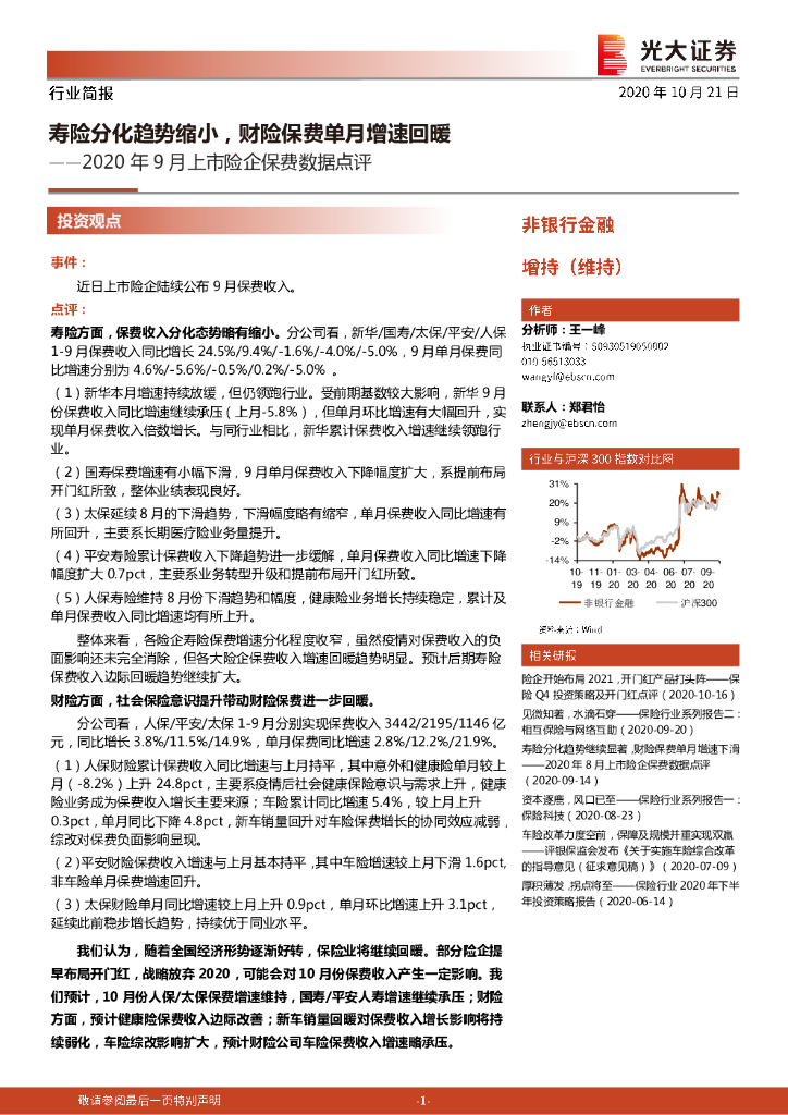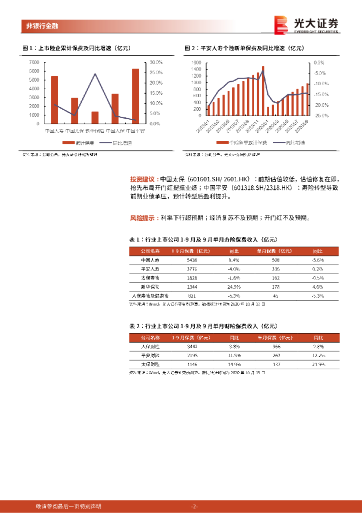 光大证券:2020年9月上市险企保费数据点评:寿险分化趋势缩小,财险保费单月增速回暖.pdf