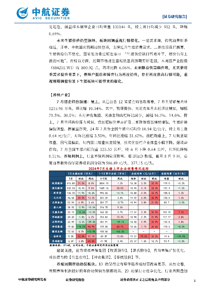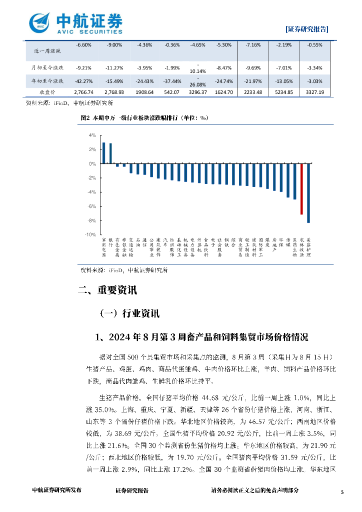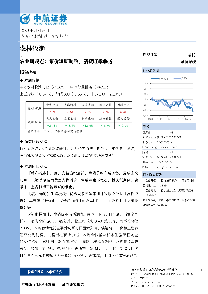 中航证券:农业周观点:猪价短期调整,消费旺季临近.pdf