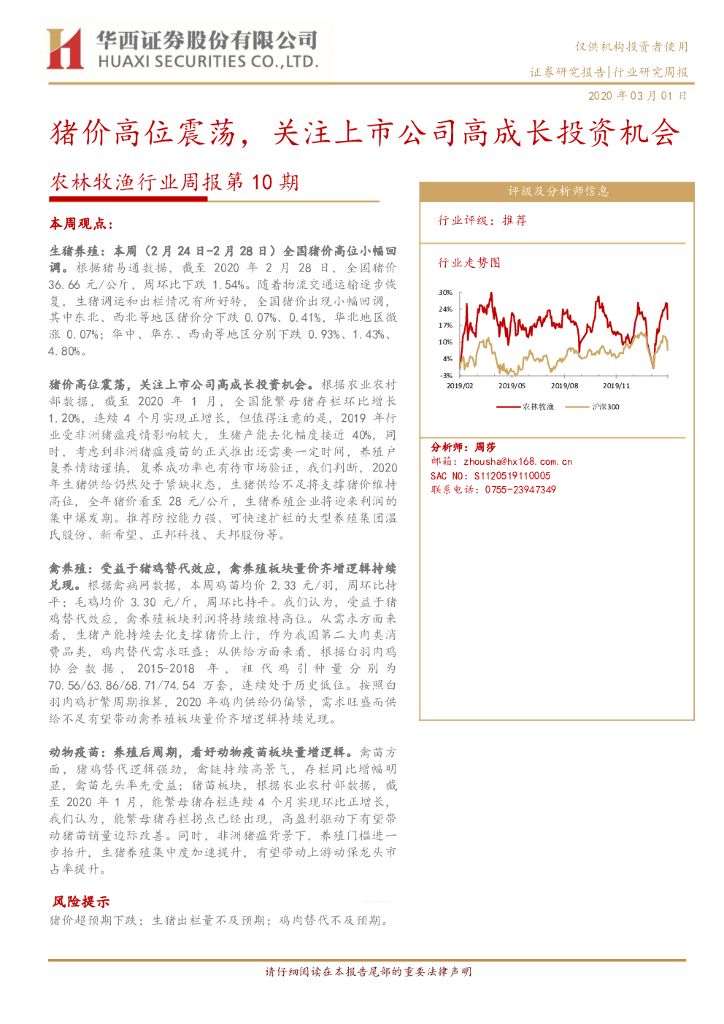 华西证券:农林牧渔行业周报第10期:猪价高位震荡,关注上市公司高成长投资机会.pdf