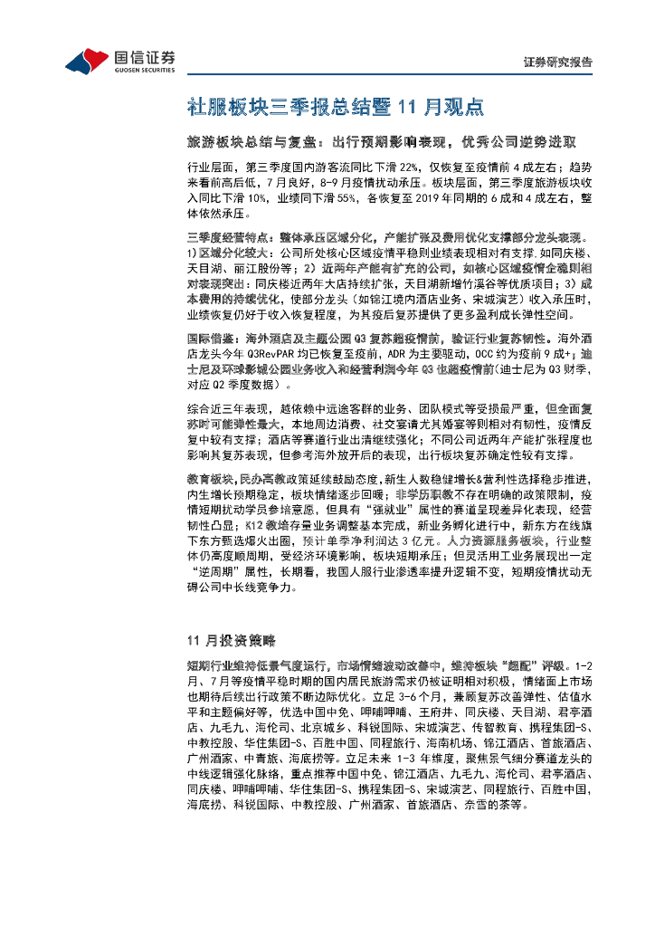 国信证券:社会服务行业三季报总结暨11月策略:三季度经营景气度回落 结构性个股机会持续演绎.pdf