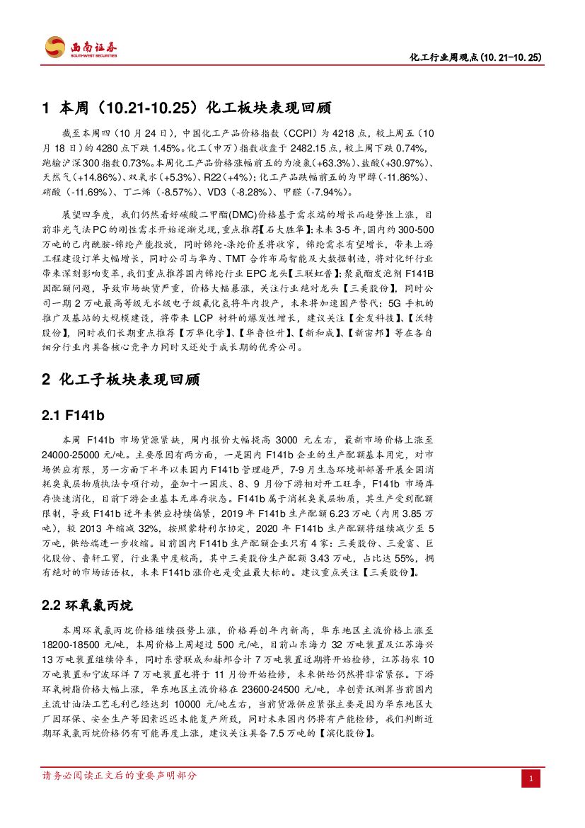西南证券:化工行业周观点:F141B配额几无价格暴涨,环氧氯丙烷价格再创新高.pdf