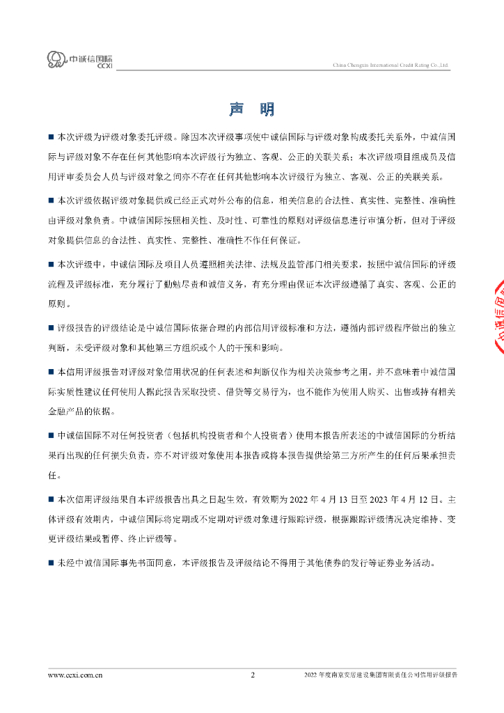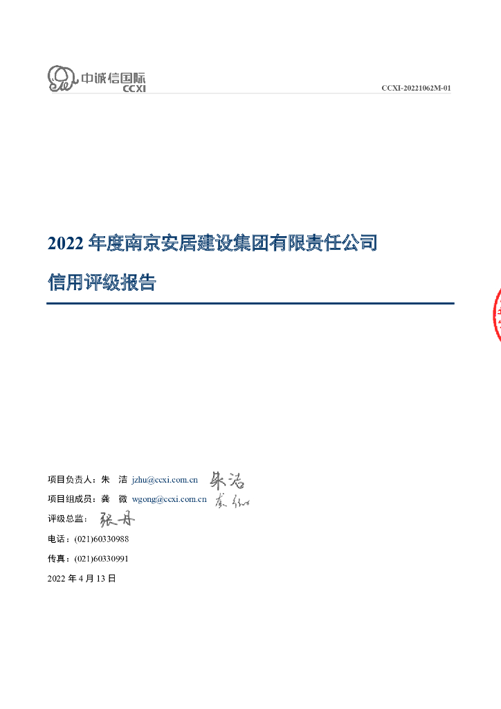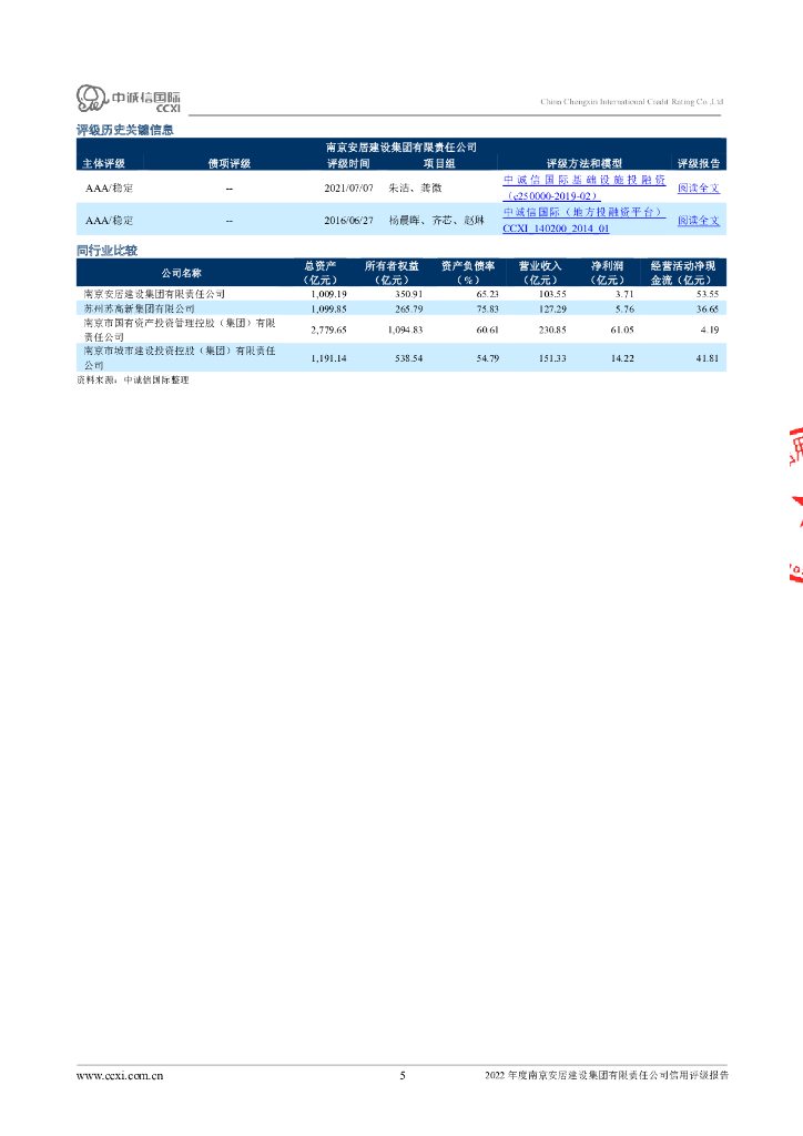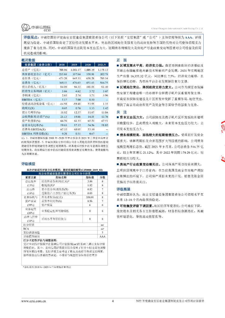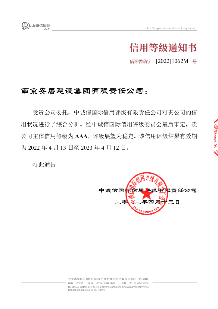 中诚信:2022年度南京安居建设集团有限责任公司信用评级报告.pdf