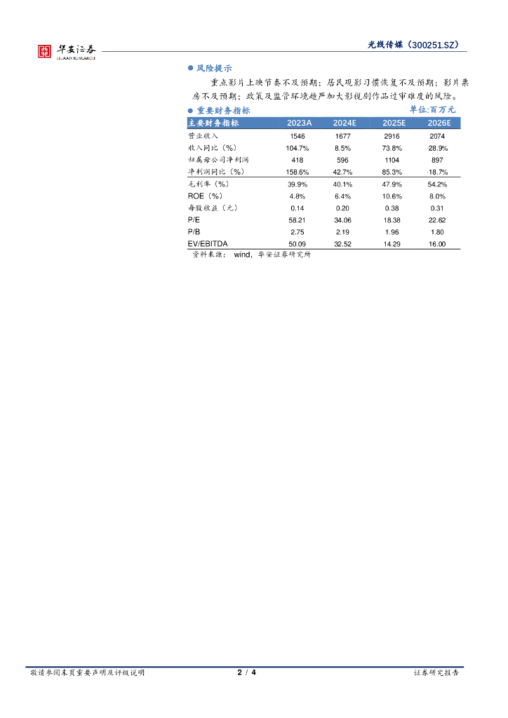 华安证券:光线传媒(300251)-24H1点评:Q2内容淡季业绩符合预期,关注重点影片定档情况.pdf
