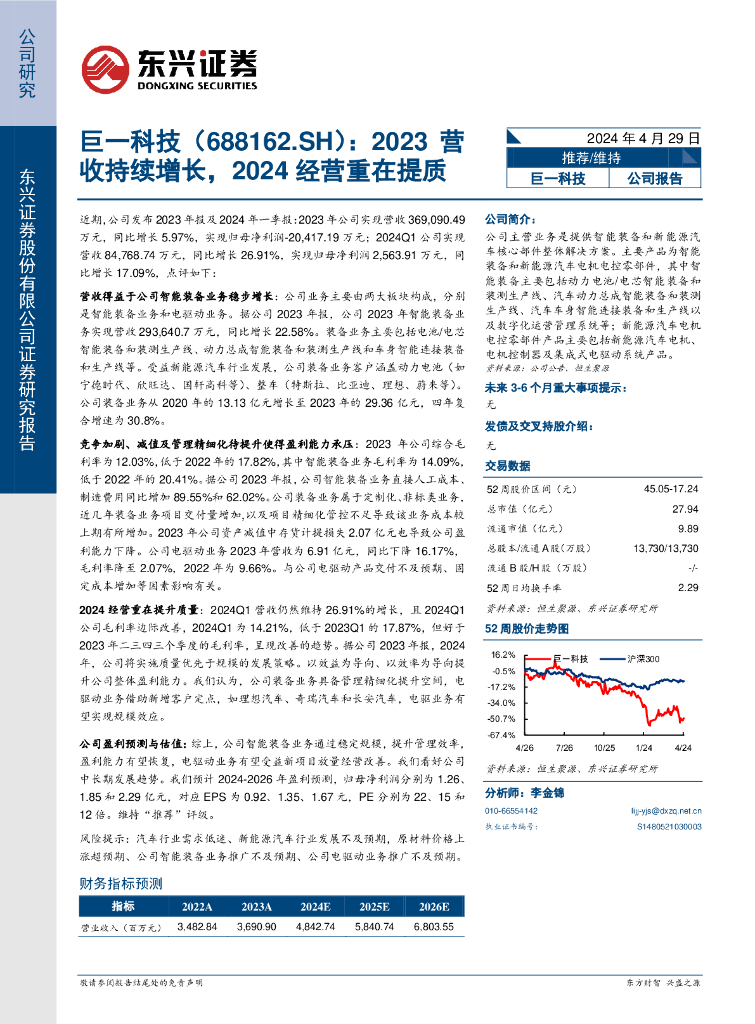 东兴证券:巨一科技(688162)-2023营收持续增长,2024经营重在提质.pdf