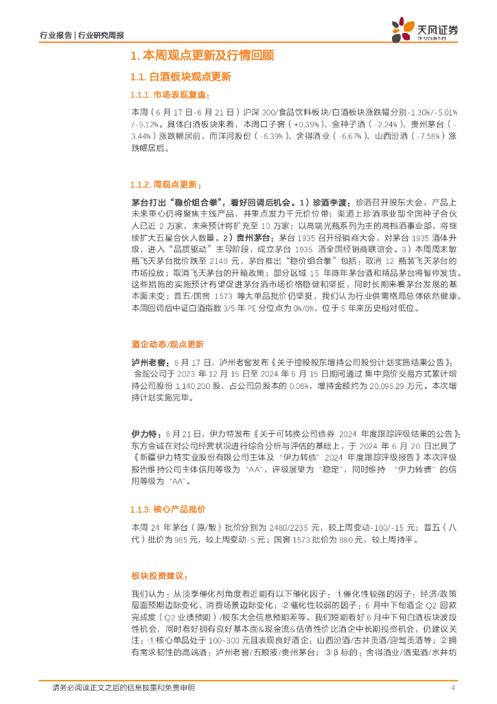 天风证券:食品饮料行业酒水饮料周报:飞天茅台批价波动,茅台打出“稳价组合拳”.pdf