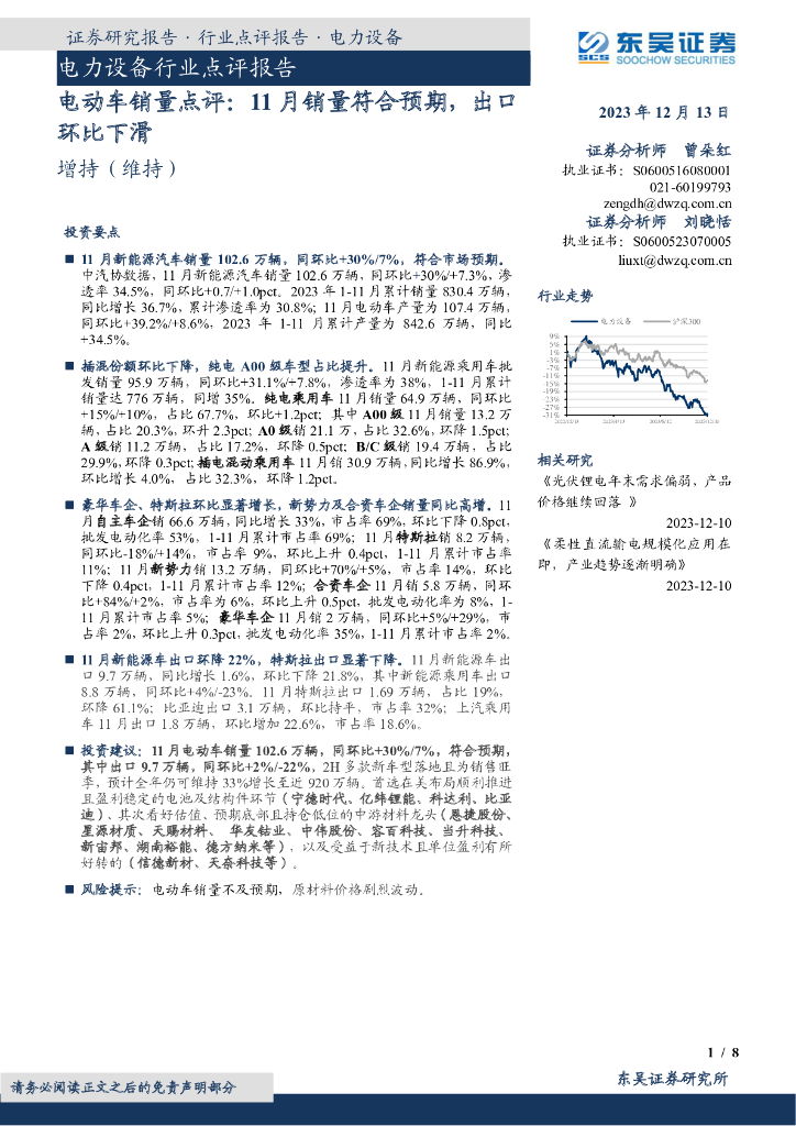 东吴证券:电动车销量点评:11月销量符合预期,出口环比下滑.pdf