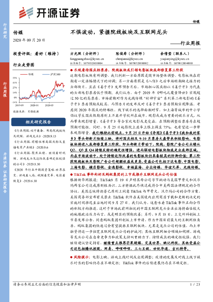 开源证券:传媒行业周报:不惧波动,紧握院线板块及互联网龙头.pdf