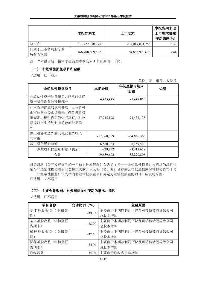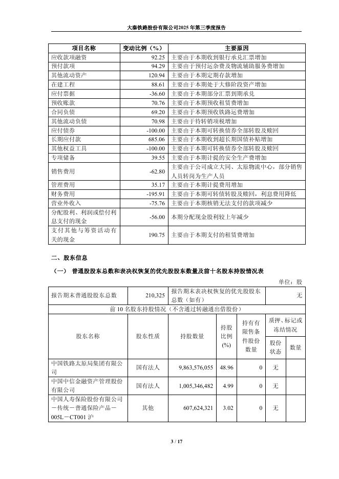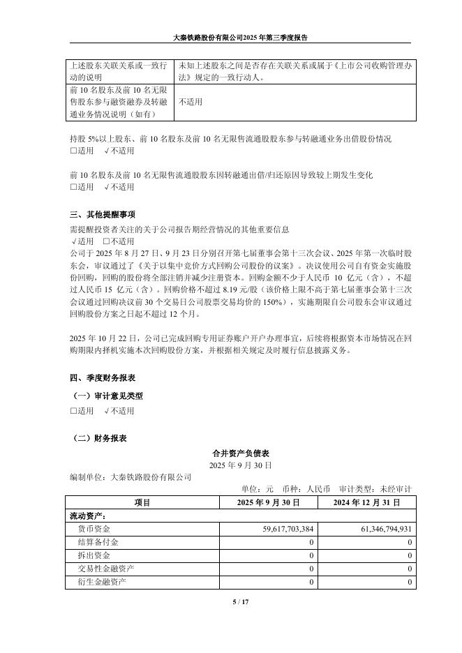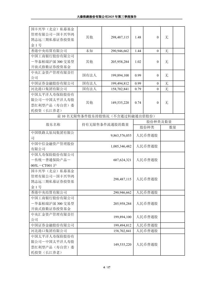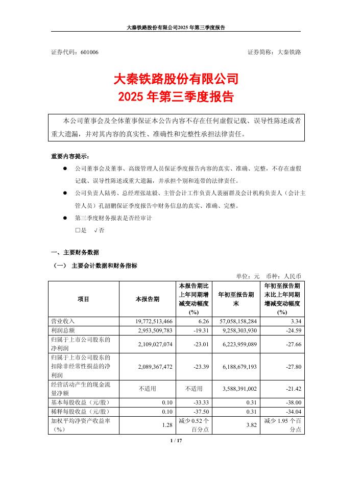 601006-大秦铁路:大秦铁路股份有限公司2025年第三季度报告.pdf