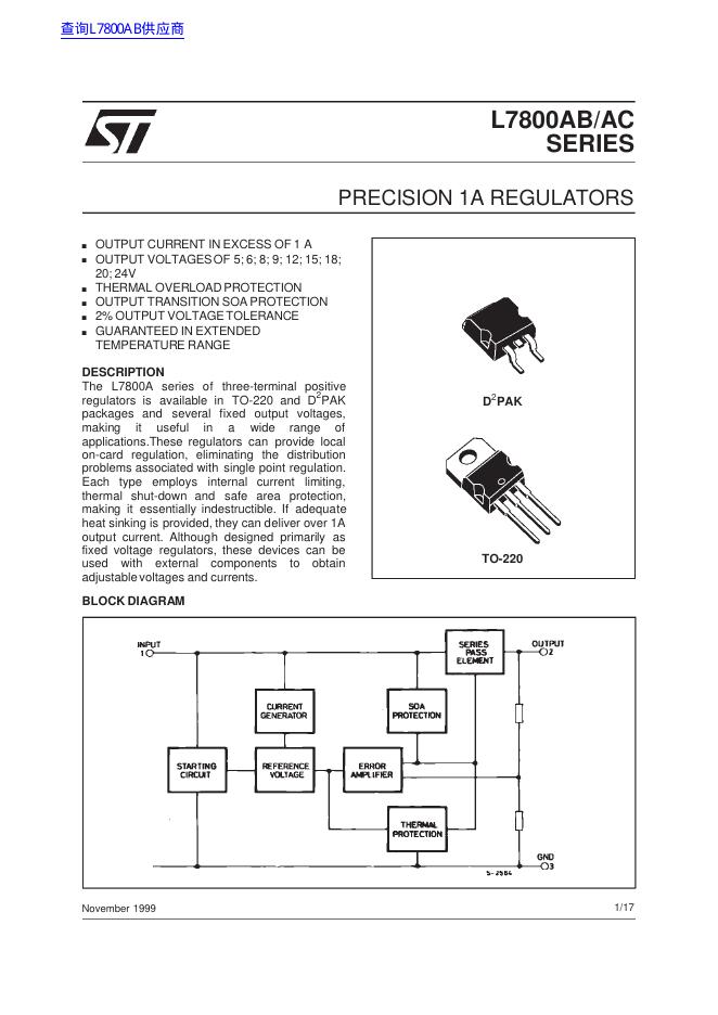 ST L7800AB/AC SERIES PRECISION 1A REGULATORS 数据手册.pdf