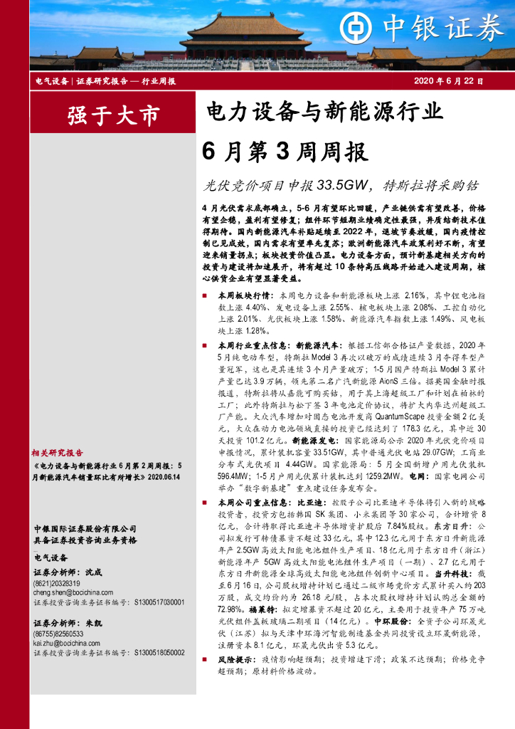 中银证券:电力设备与新能源行业6月第3周周报:光伏竞价项目申报33.5GW,特斯拉将采购钴.pdf