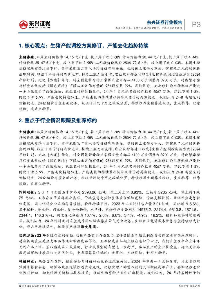东兴证券:农林牧渔行业周观点:生猪产能调控方案修订,产能去化趋势持续.pdf