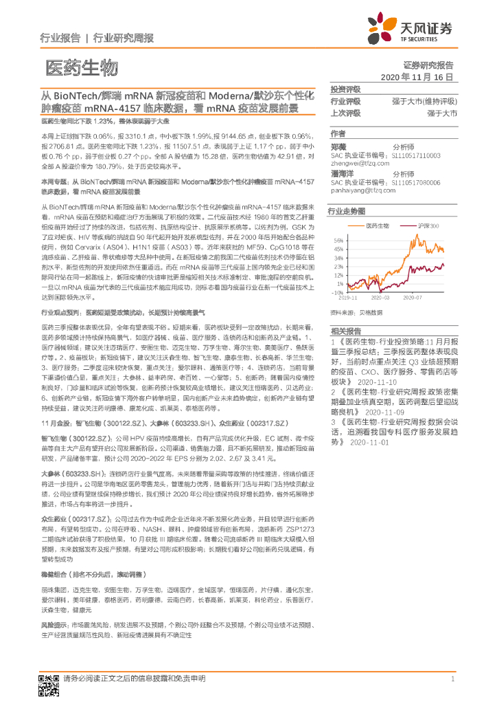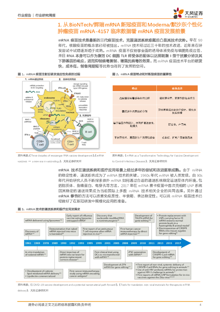 天风证券:医药生物行业研究周报:从 BioNTech/辉瑞mRNA新冠疫苗和Moderna/默沙东个性化肿瘤疫苗mRNA-4157临床数据,看mRNA疫苗发展前景.pdf