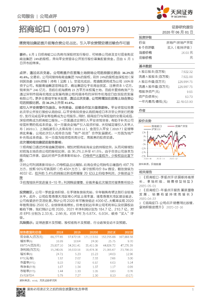 天风证券:招商蛇口(001979)-增资南油集团提升前海合资公司占比,引入平安资管定增后续合作可期.pdf