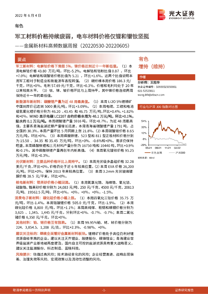 光大证券:金属新材料高频数据周报:军工材料价格持续疲弱,电车材料价格仅锂和镨钕坚挺.pdf