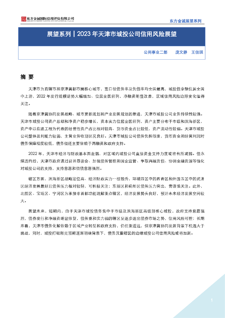 东方金诚:展望系列-2023年天津市城投公司信用风险展望.pdf