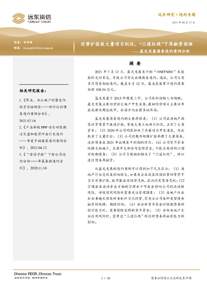 远东资信: 逆势扩张致大量项目积压,“三道红线”下再融资困难——蓝光发展债券违约案例分析报告.pdf