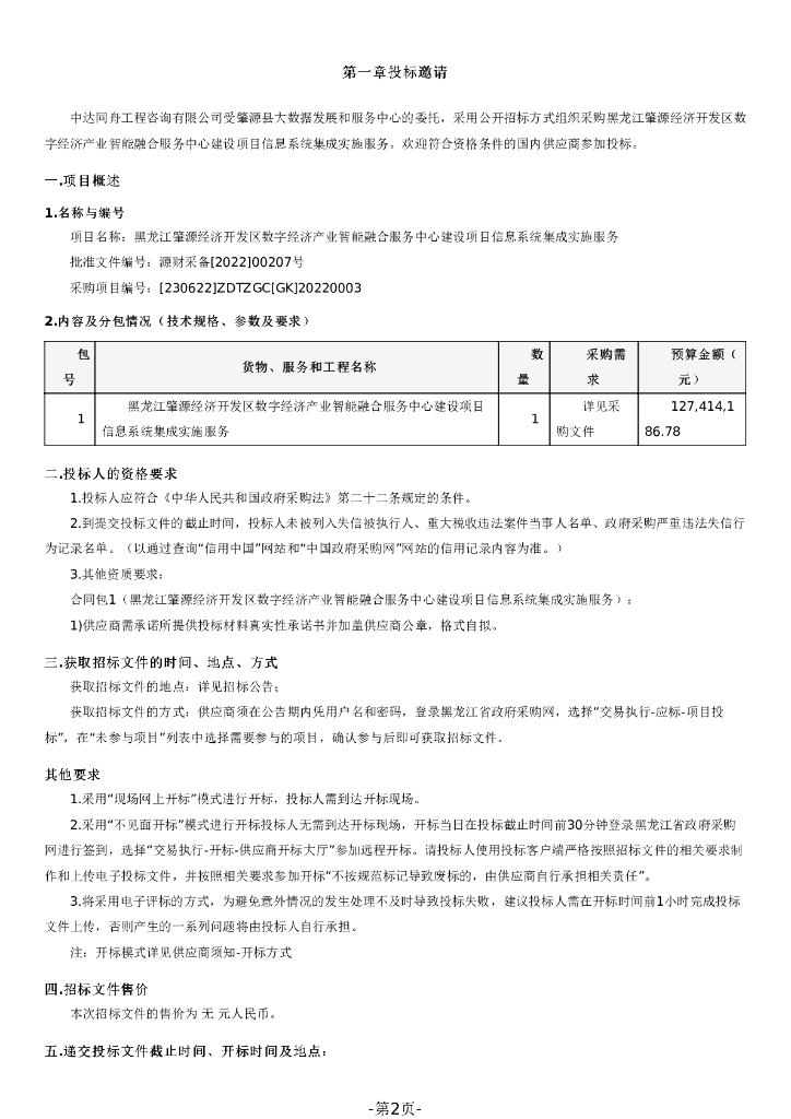 黑龙江肇源经济开发区数字经济产业智能融合服务中心建设项目信息系统集成实施服务 招标文件.pdf