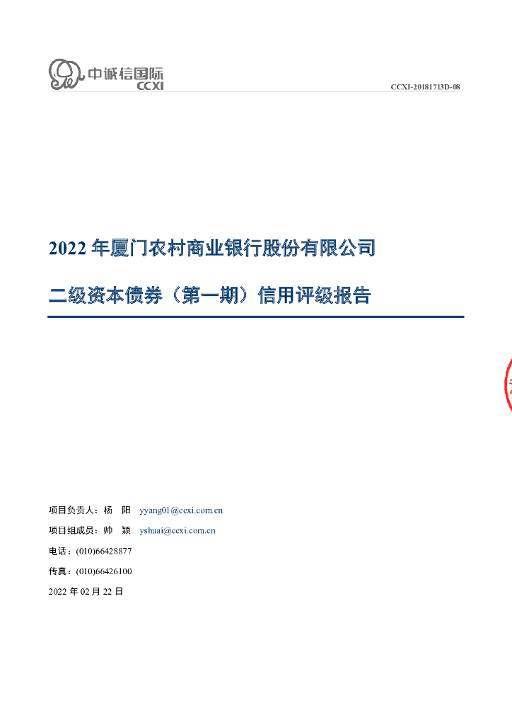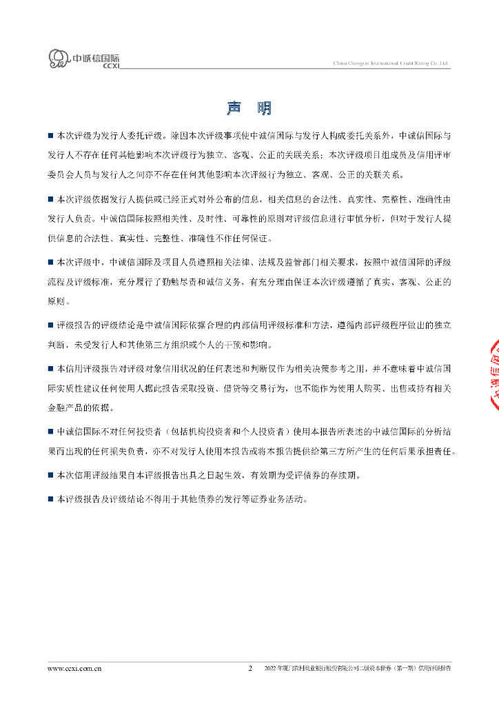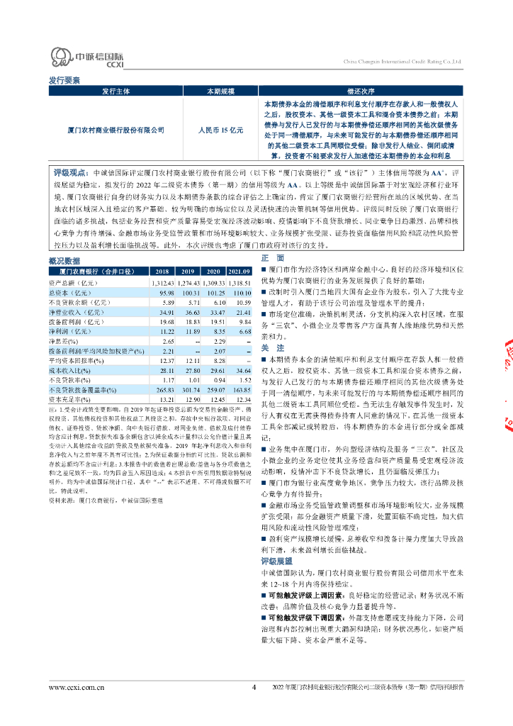 大公:2022年厦门农村商业银行股份有限公司二级资本债券(第一期)信用评级报告及跟踪评级安排.pdf