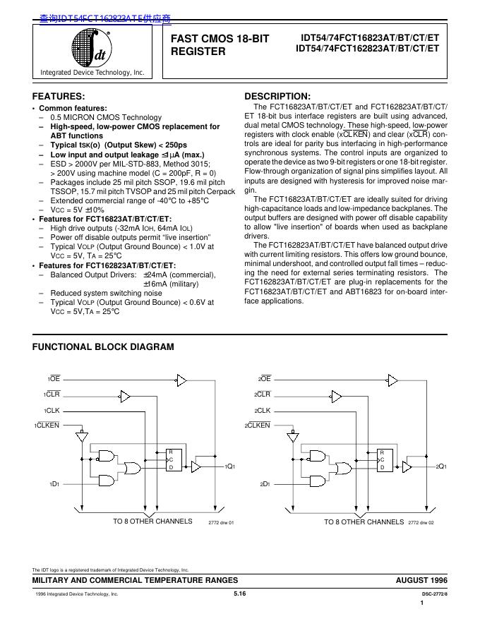IDT IDT54/74FCT16823AT/BT/CT/ET、IDT54/74FCT162823AT/BT/CT/ET 数据手册.pdf