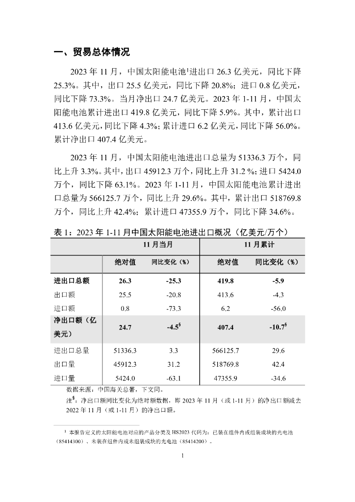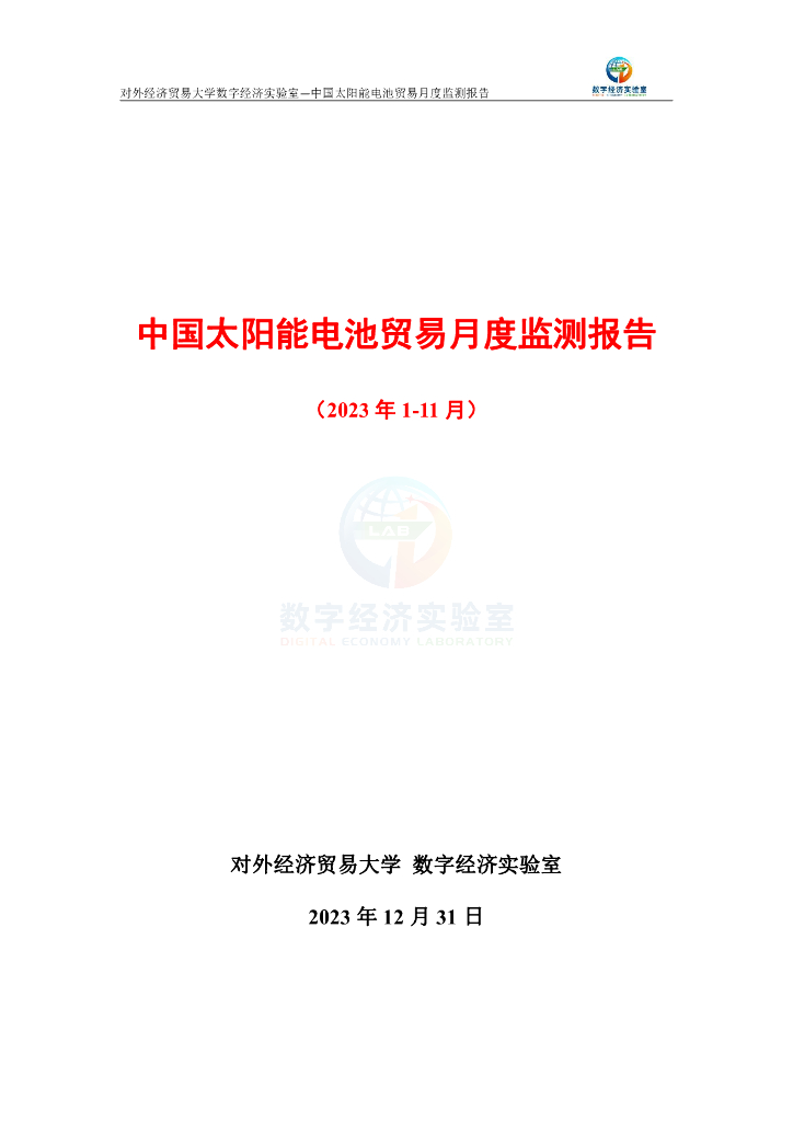 对外经济贸易大学:中国太阳能电池贸易月度(2023年1-11月)监测报告.pdf