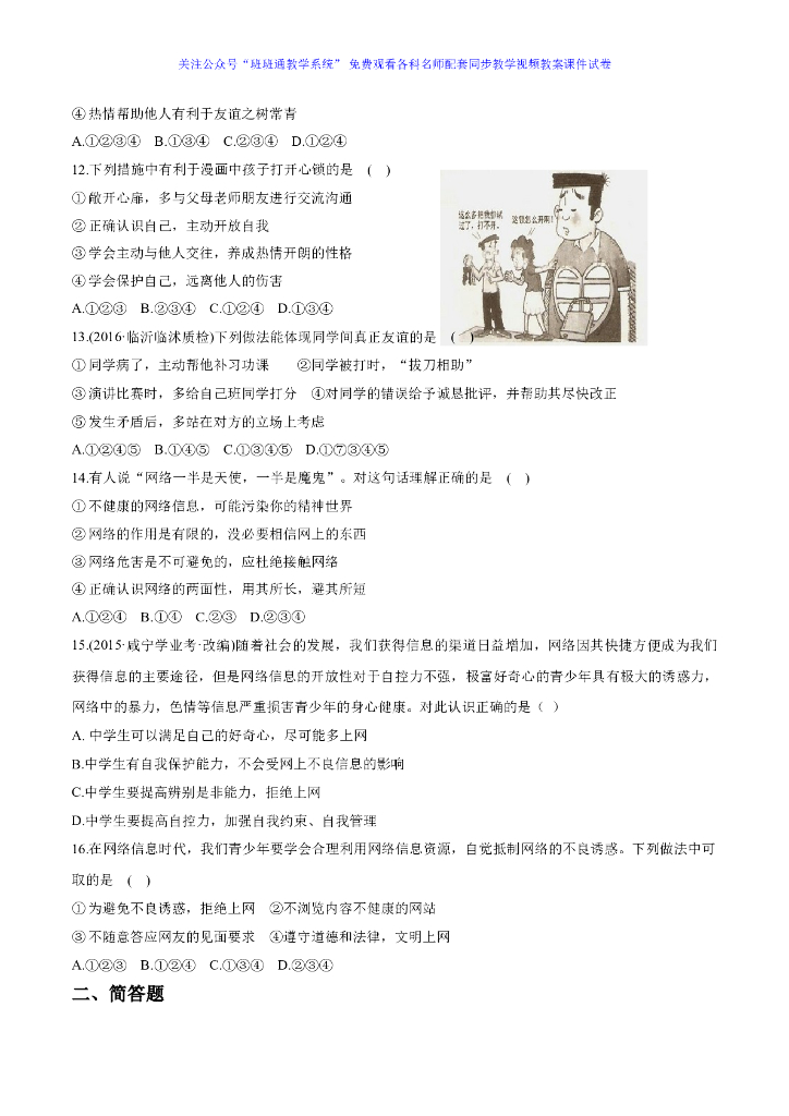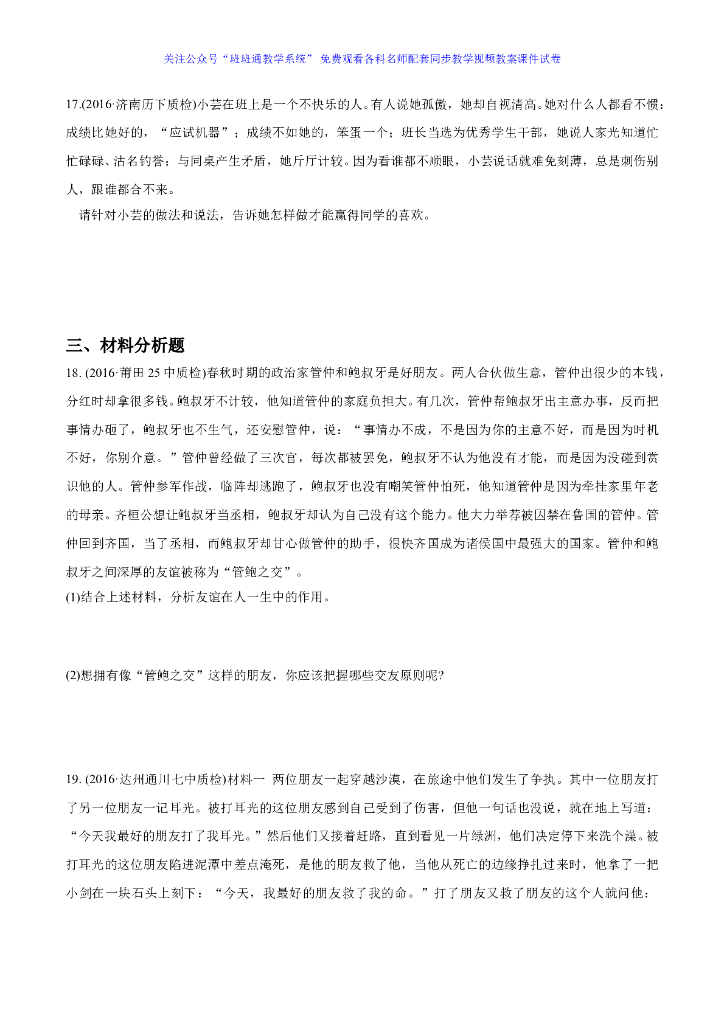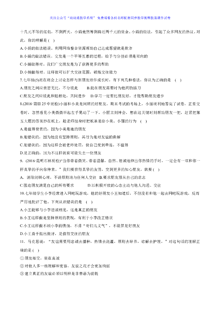 七年级上册 初中道德与法治第二单元 友谊的天空 (1).doc
