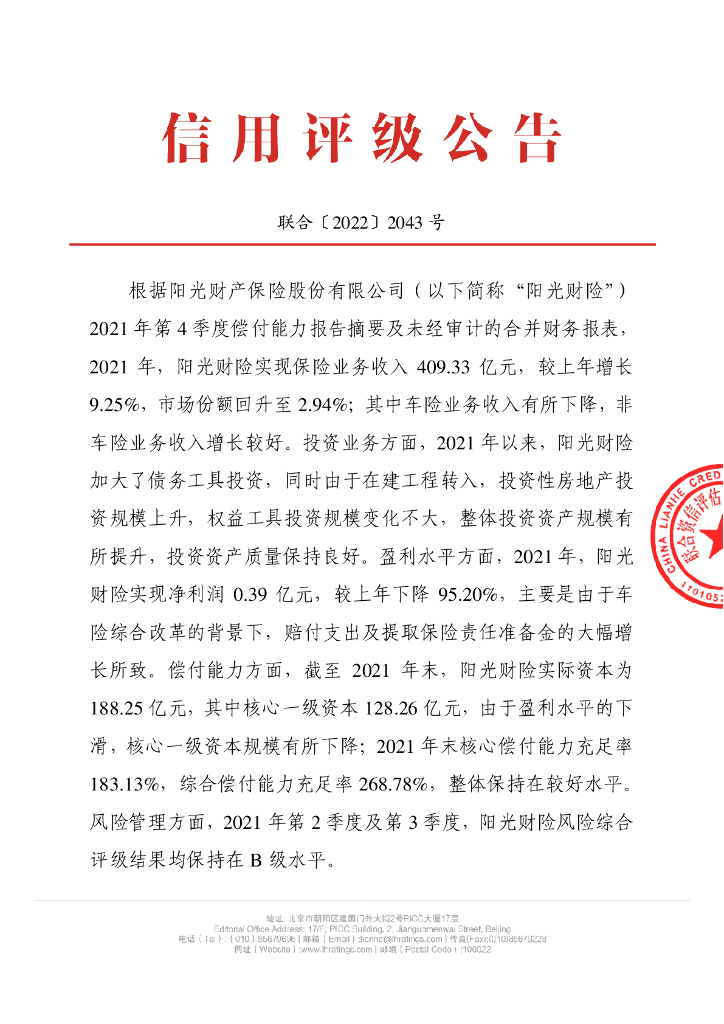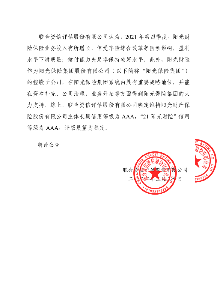 联合资信:阳光财产保险股份有限公司季度跟踪评级公告.pdf