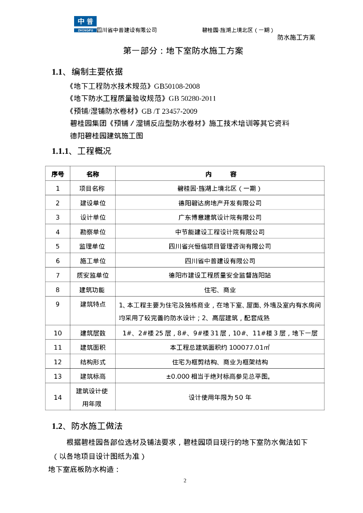 商业住宅项目防水施工方案.doc