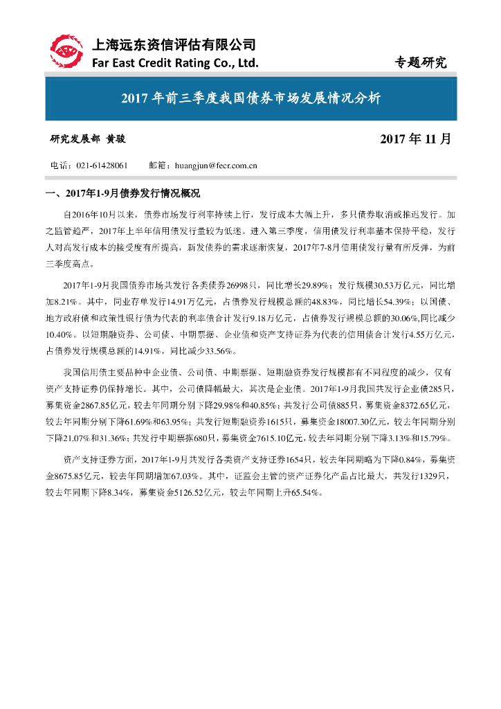 远东资信:2017年前三季度我国债券市场发展情况分析报告.pdf