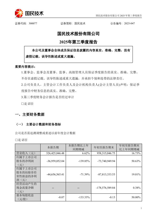 300077-国民技术:2025年三季度报告.pdf