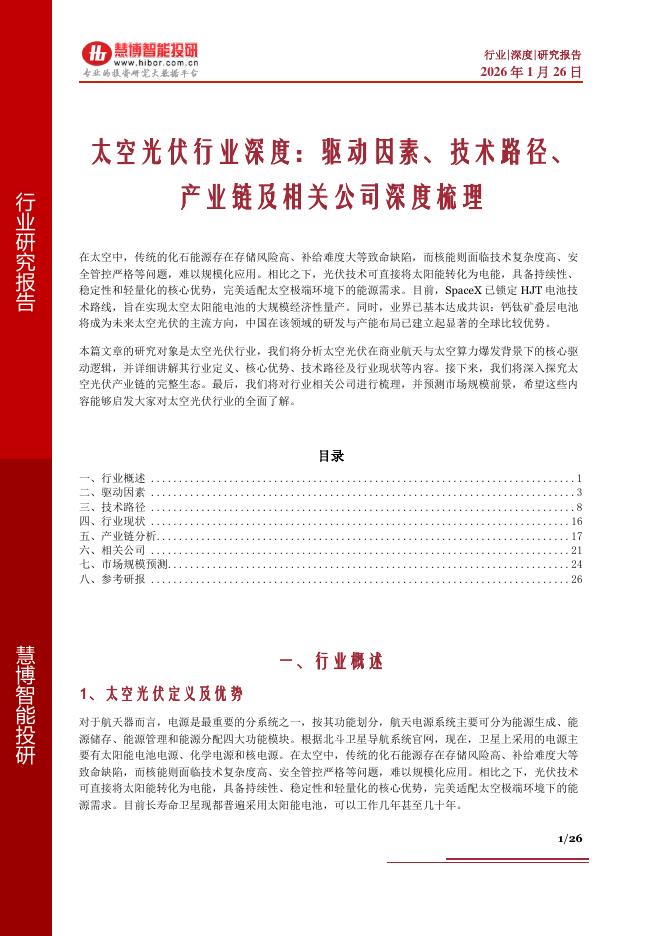 慧博智能投研:太空光伏行业深度:驱动因素、技术路径、产业链及相关公司深度梳理.pdf