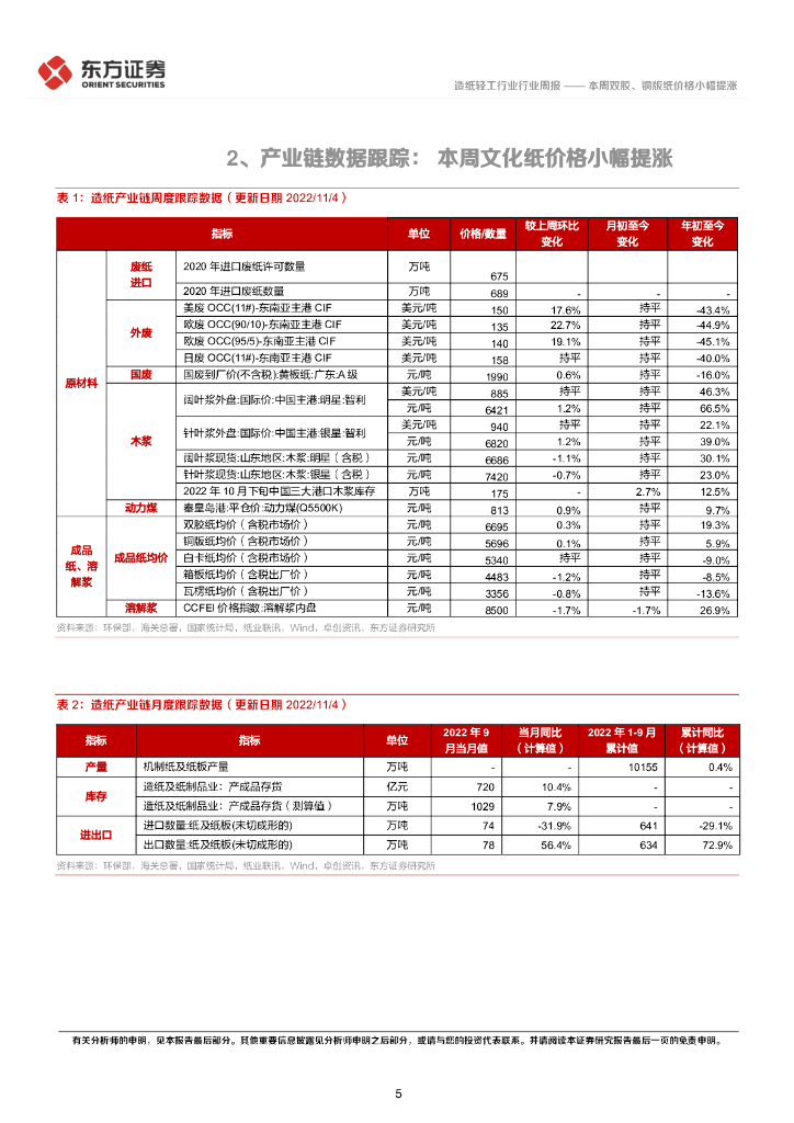 东方证券:造纸产业链数据每周速递:本周双胶、铜版纸价格小幅提涨.pdf