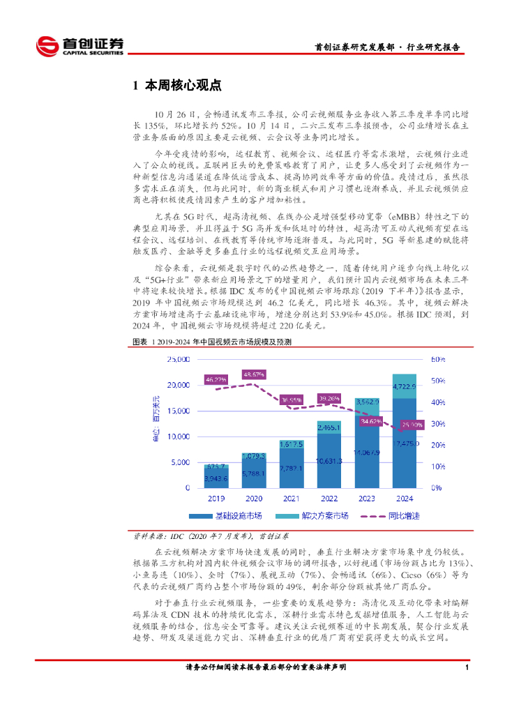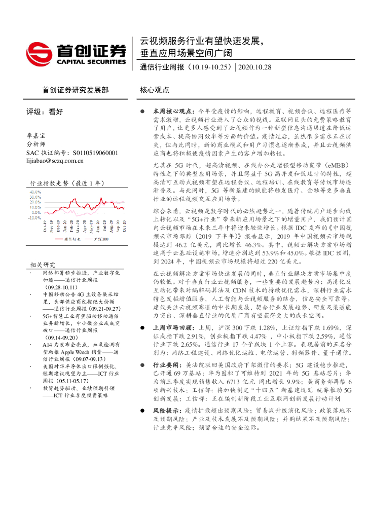首创证券:通信行业周报:云视频服务行业有望快速发展,垂直应用场景空间广阔.pdf