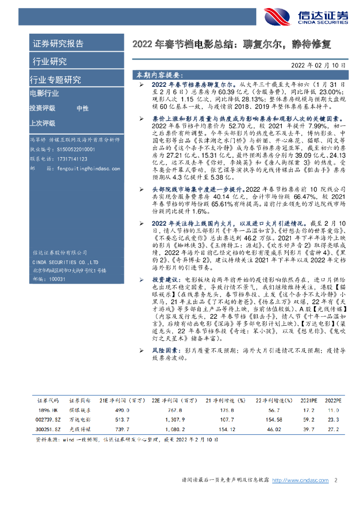 信达证券:电影行业2022年春节档电影总结:聊复尔尔,静待修复.pdf