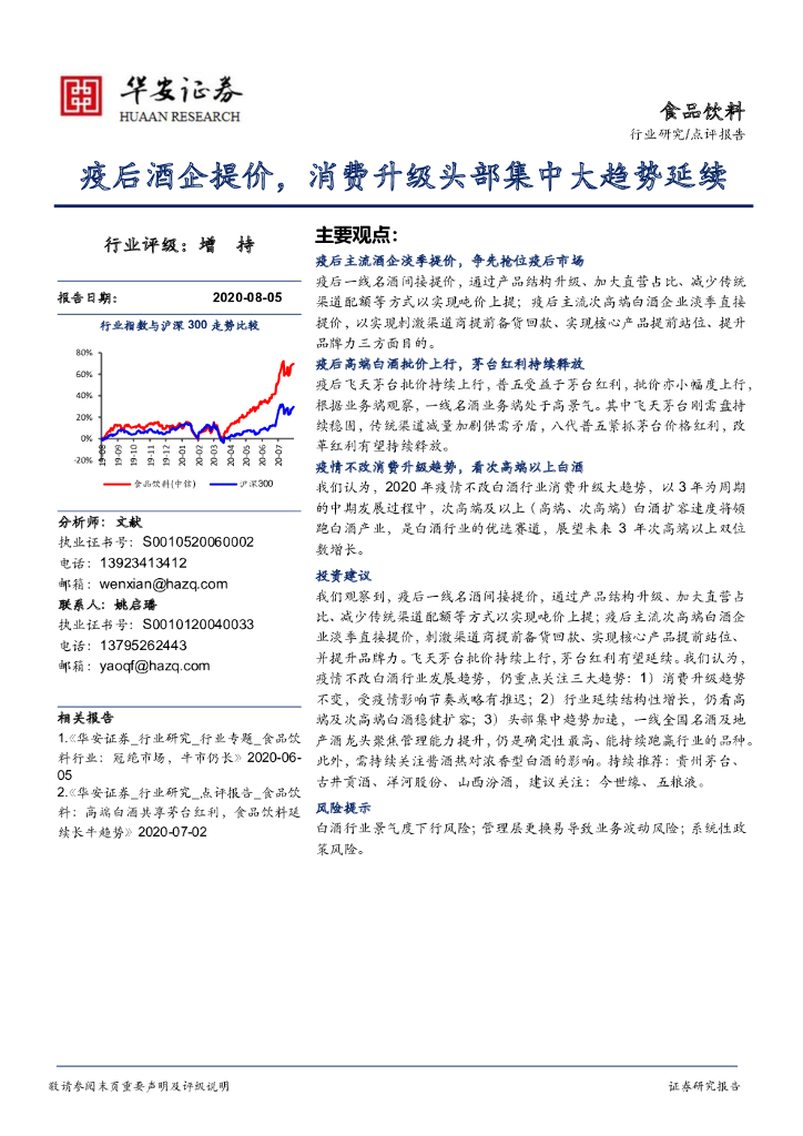 华安证券:食品饮料:疫后酒企提价,消费升级头部集中大趋势延续.pdf