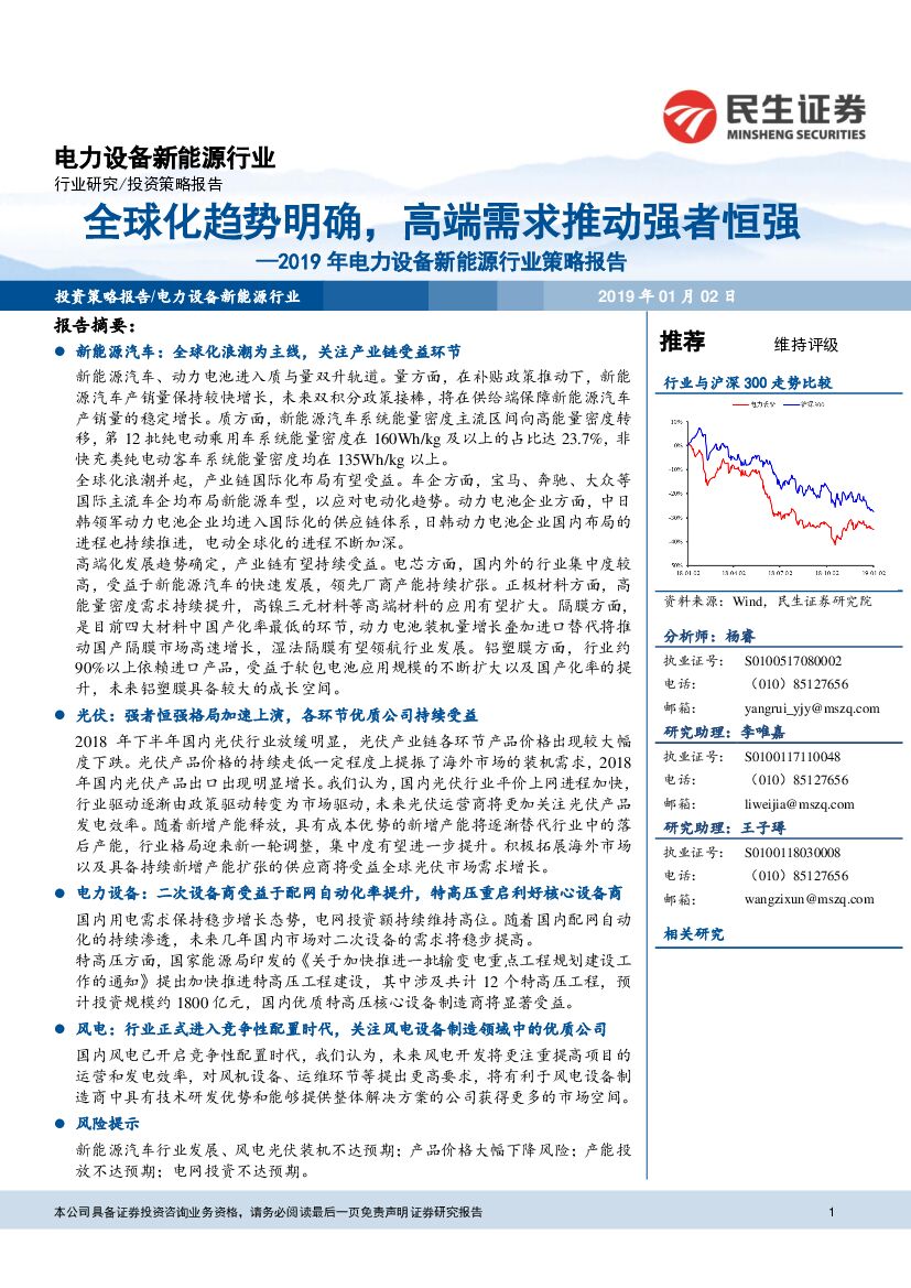 民生证券:2019年电力设备新能源行业策略报告:全球化趋势明确,高端需求推动强者恒强.pdf