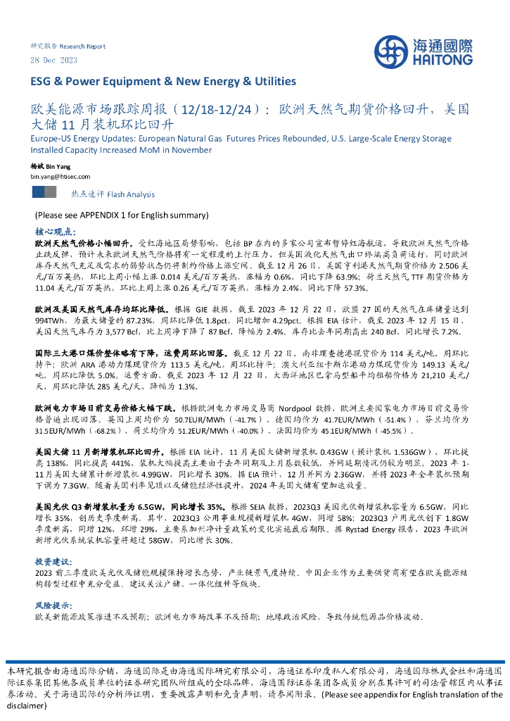 海通国际:欧美能源市场跟踪周报:欧洲天然气期货价格回升,美国大储11月装机环比回升.pdf