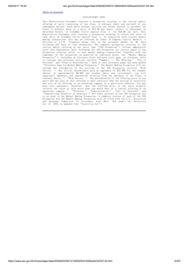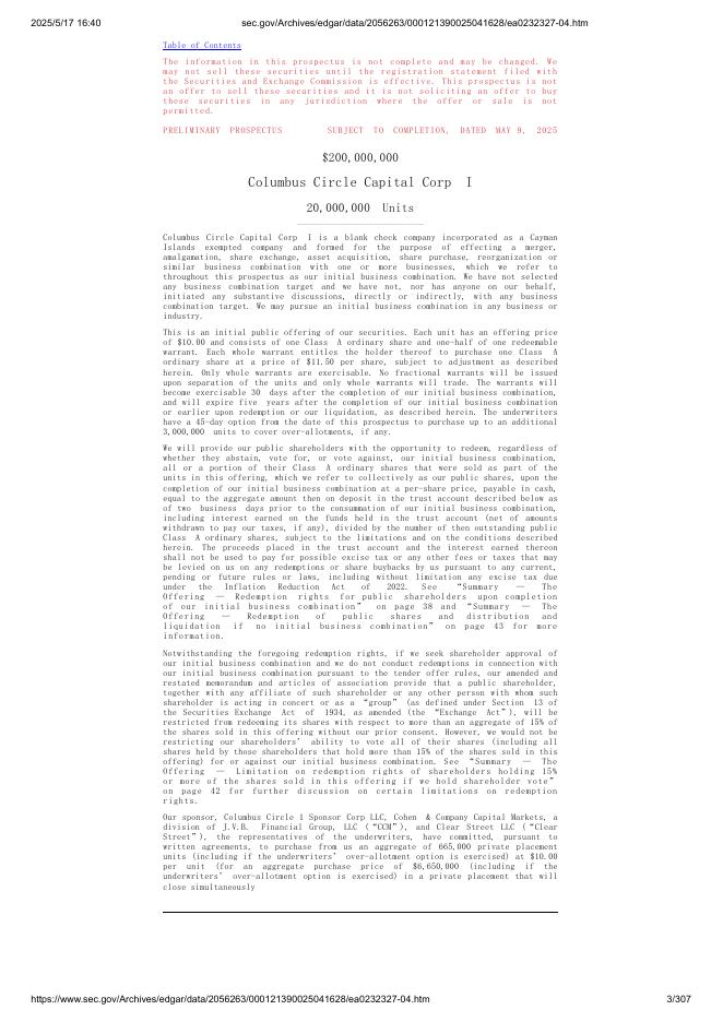 Columbus Circle Capital Corp I美股纳斯达克IPO上市招股说明书.pdf