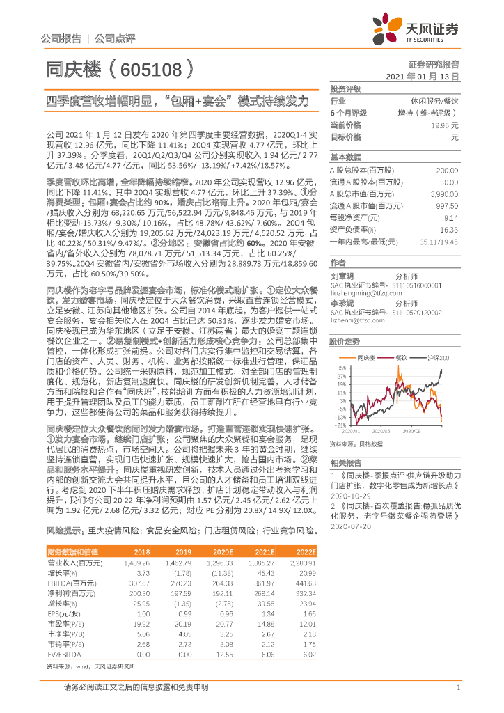天风证券:同庆楼(605108)-四季度营收增幅明显,“包厢+宴会”模式持续发力.pdf