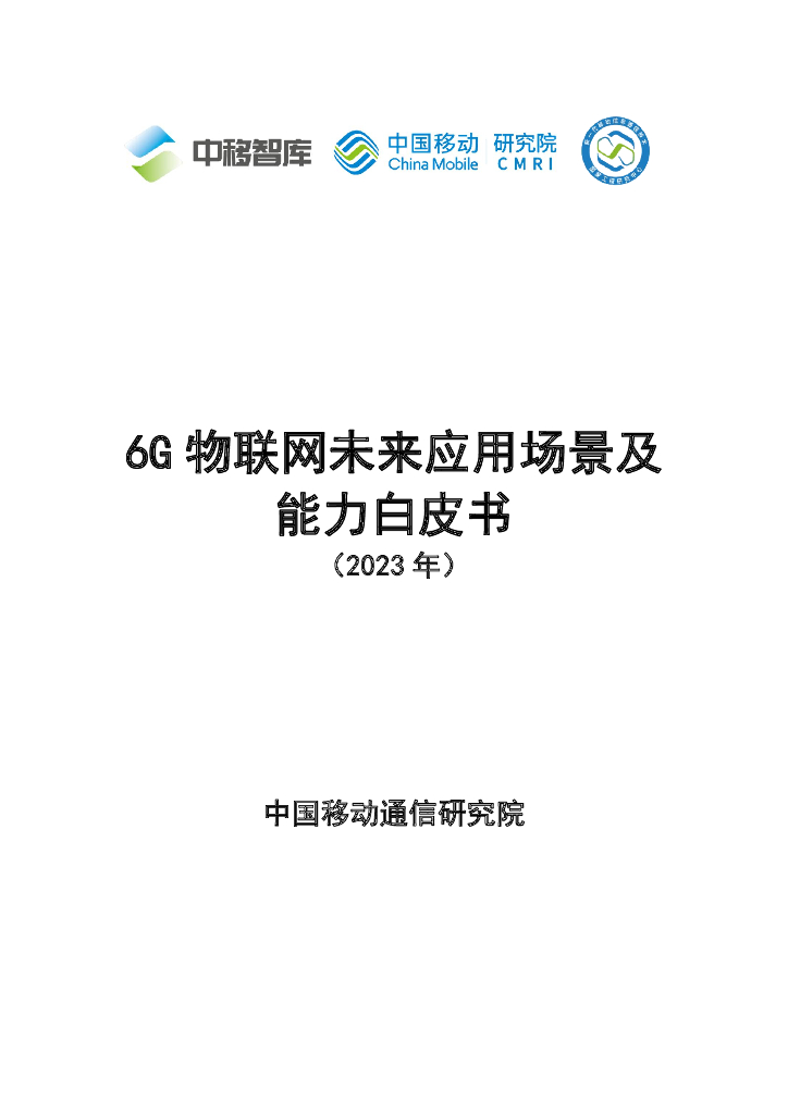 中国移动研究院:6G物联网未来应用场景及能力白皮书(2023年).pdf