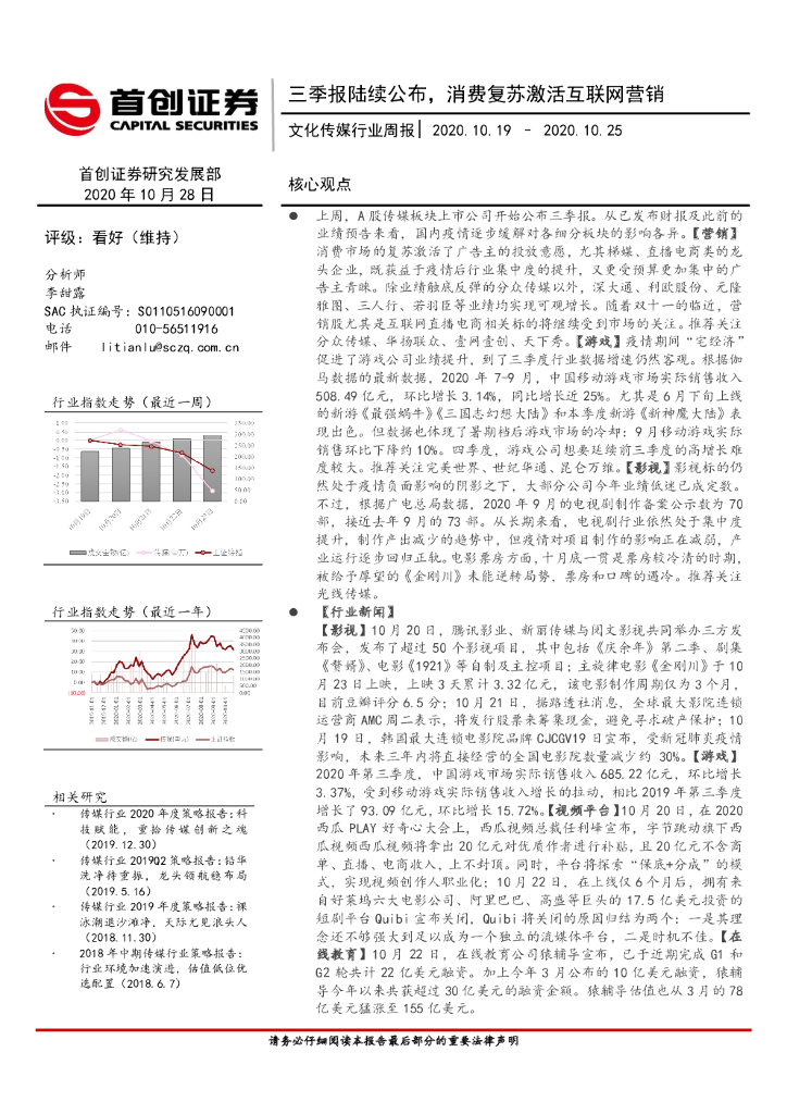 首创证券:文化传媒行业周报:三季报陆续公布,消费复苏激活互联网营销.pdf