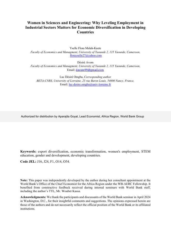 世界银行:科学和工程领域的女性:为什么工业部门的平等就业对发展中国家的经济多样化至关重要(英文版).pdf