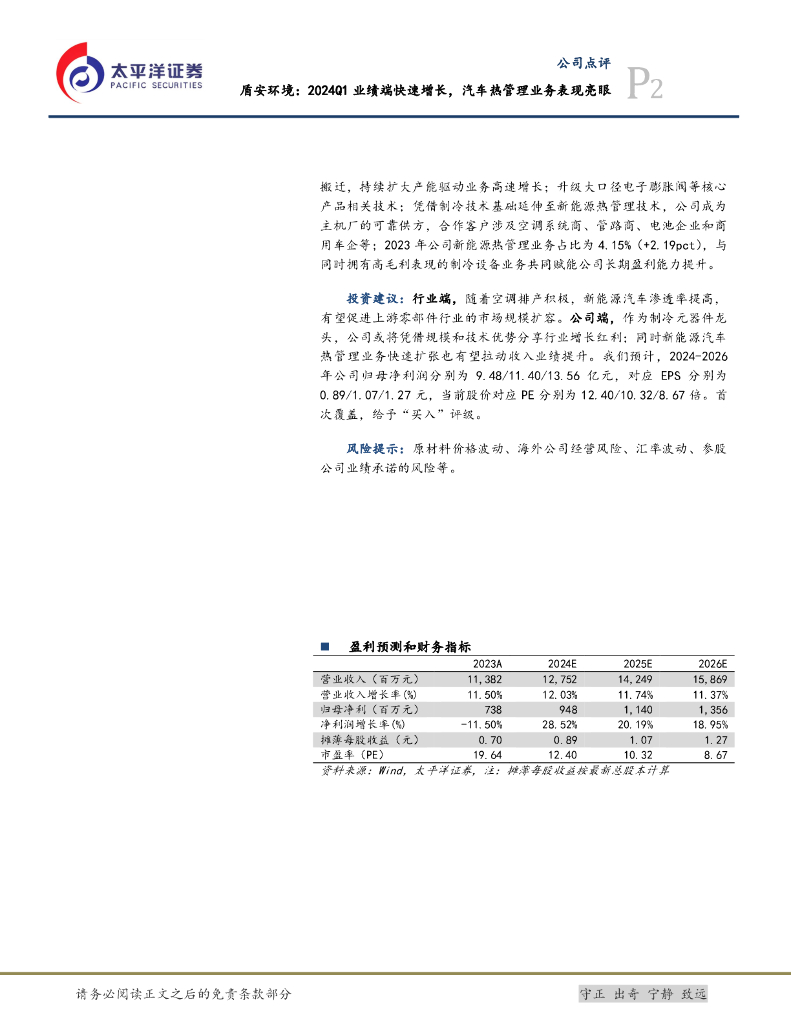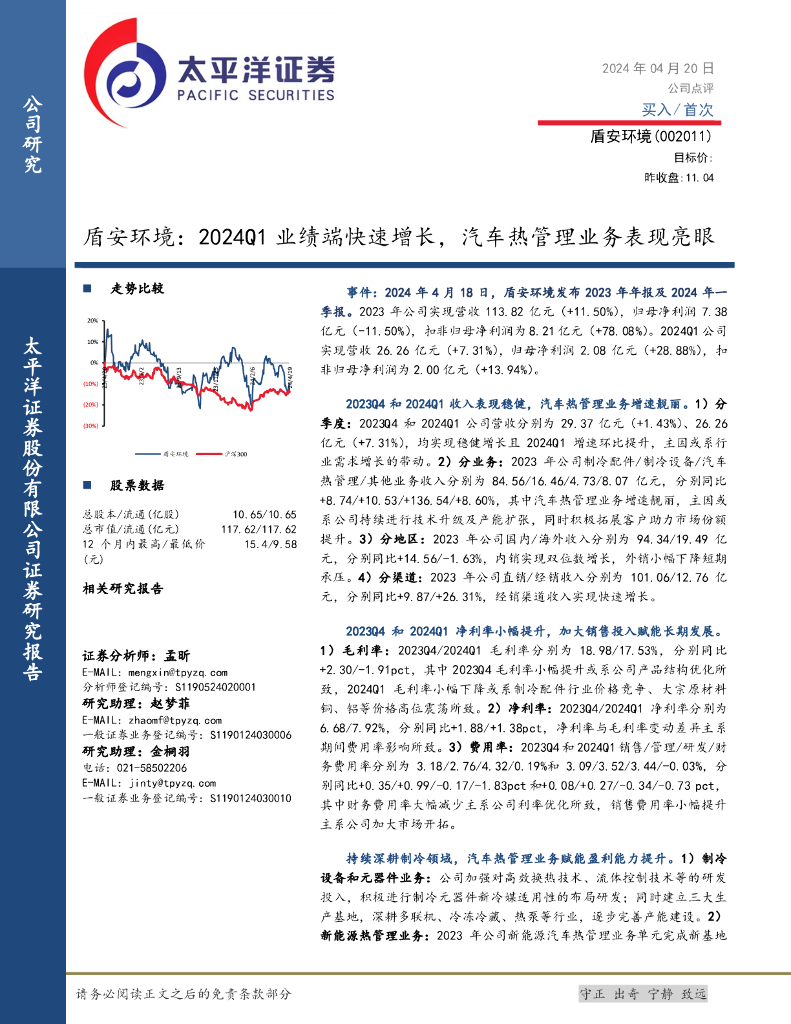 太平洋证券:盾安环境:2024Q1业绩端快速增长,汽车热管理业务表现亮眼.pdf
